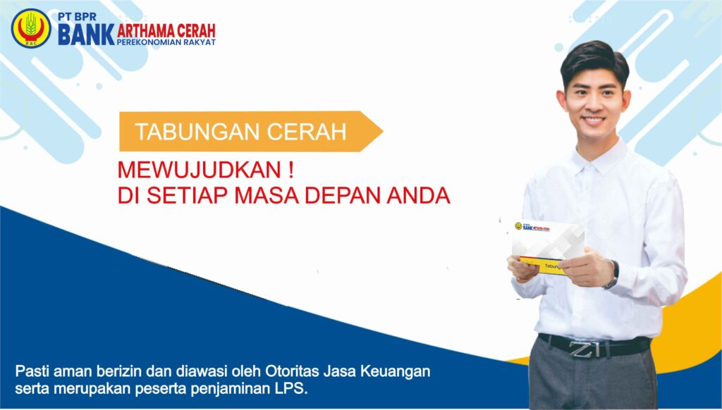 Tabungan Cerah Merupakan produk simpanan berupa tabungan yang dapat dimanfaatkan oleh masyarakat umum dengan usia mulai 17 tahun/sudah memiliki KTP, dengan setoran awal minimal Rp. 25.000,- . Tabungan dapat disetor dan ditarik sewaktu-waktu selama masih dalam jam operasional kas dan hari kerja BPR Arthama Cerah.