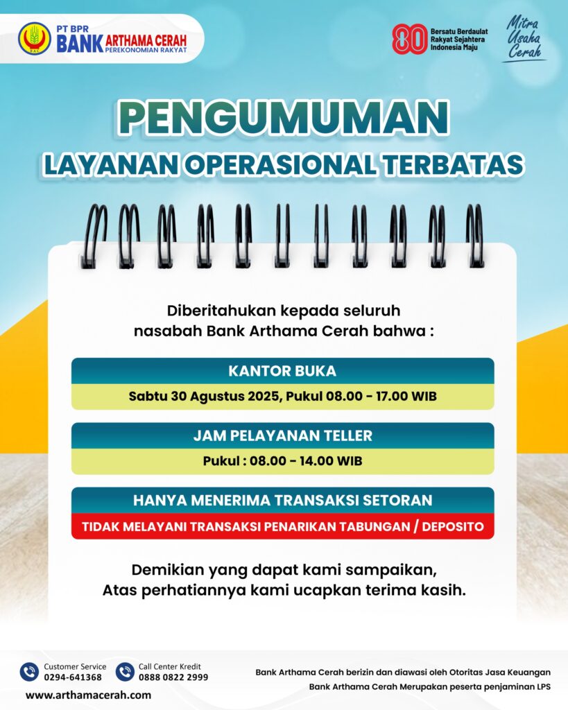 Membawa BPR Arthama Cerah sebagai lembaga keuangan kepercayaan Masyarakat.